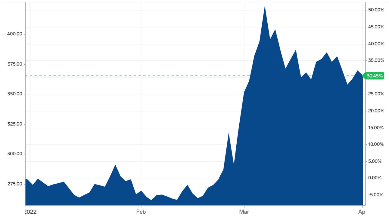 You may have read about the impacts of the war in Ukraine on wheat and other foods like sunflower oil. But the dimension of the first and second order effects which are creating swings in the food market are unprecedented. I was completely mind-blown when I listened to David Friedberg talk about it on the All-in Podcast last week.