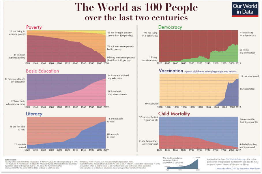 Warum also fühlt es sich wie das Gegenteil an? Es werden schreckliche Verbrechen begangen, die Entwicklung der Wirtschaft ist ungewiss, wir bringen den Planeten um, und deshalb wird der Planet uns gleich wieder umbringen...