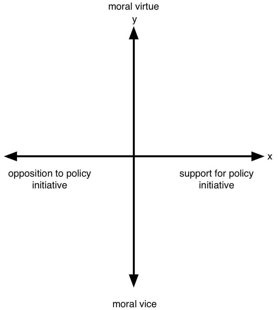In other words, it doesn’t matter what you actually say or do. Your virtue or lack thereof (your y-value) depends on how much you support the policy initiative (your x-value). So, in this case, if you don’t support a mandated equal-pay initiative for men and women, you must be prejudiced against women or misogynistic.